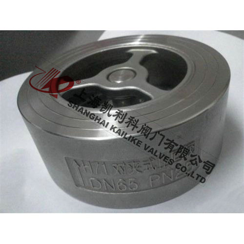 H71H、H71W對夾式止回閥該閥由閥體、閥瓣、彈簧等組成,水平或垂直安裝于管路系統(tǒng),防止介質(zhì)倒流,具有結(jié)構(gòu)短、體積小、質(zhì)量輕;閥瓣關(guān)閉快速,水錘壓力小;流道通暢,流體阻力小;動(dòng)作靈敏,密封性能好。
