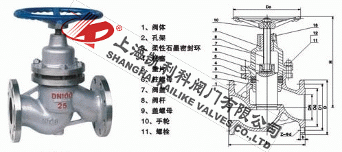 7、當手輪旋轉時,通過閥桿帶動柱塞在導向套中上、下往復運動,使柱塞端部斜錐面與閥座錐面完成閥門的開啟與關閉.